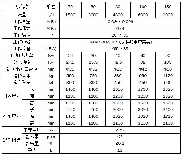 ZYA系列廂式拖車式全自動(dòng)真空濾油機(jī)參數(shù):