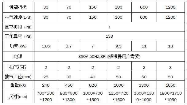 小型抽真空機組參數(shù)70L/S: