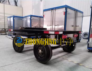 a.拖車(chē)式全封閉,移動(dòng)方便,安裝汽車(chē)輪胎,橋式減震器,剎車(chē)總成,全車(chē)鋼結(jié)構(gòu)焊接。